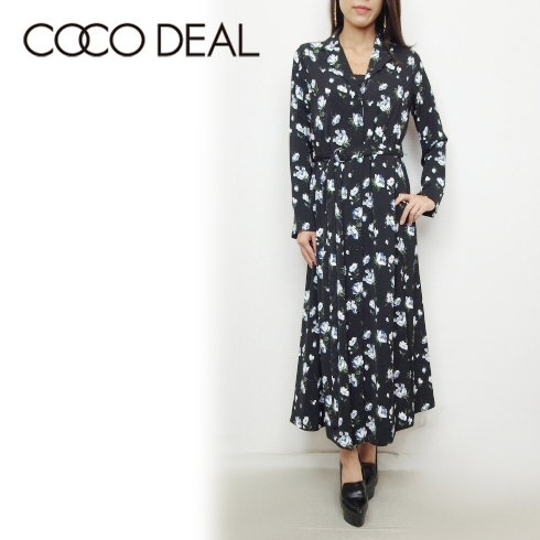サテン地にレトロなボタニカルフラワーをのせたシャツマキシワンピース。