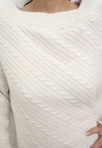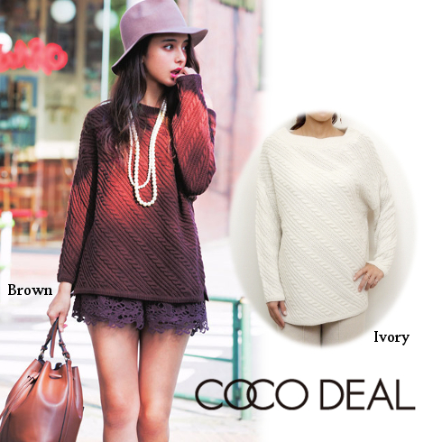 今年らしいケーブル編み地をななめに使ったビックニット。