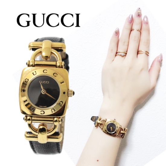 高級感のあるグッチの代表的なモチーフのホースビットデザインの腕時計
