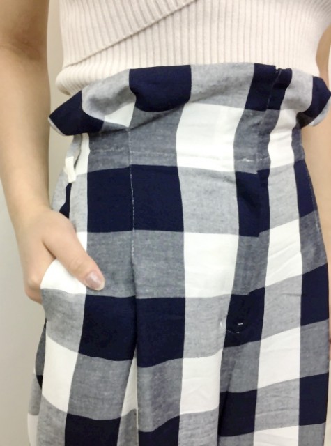 今季のトレンド、大人可愛いギンガムチェックワイドパンツ