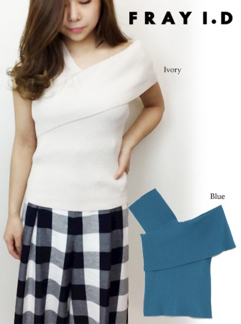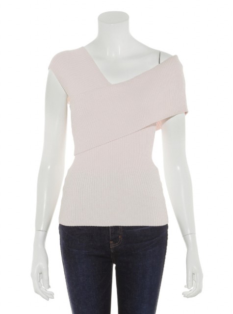 肌触りが優しいコットンベースの素材を使用したワンショルダーニット