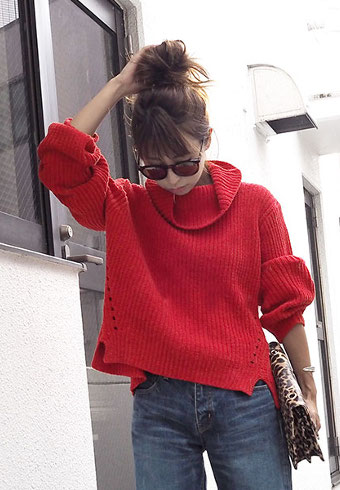 ルーズなタートルネックで顔周りをすっきりと♪肌触りのいいニットが嬉しい♪