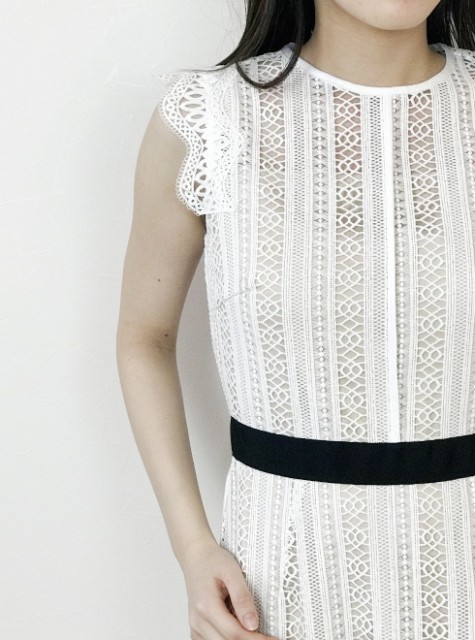 ストライプ柄のレースを甘さ控えめに仕上げたワンピース♪