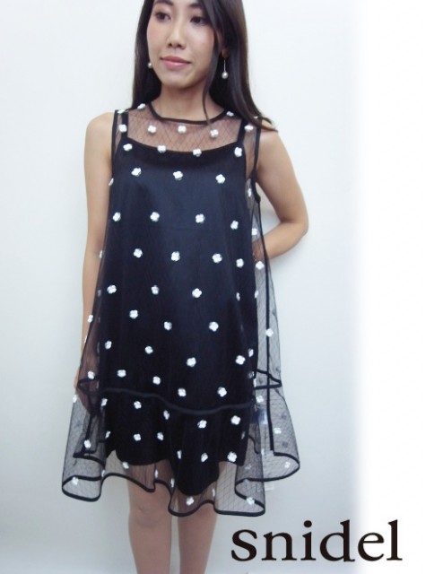 チュールの透け感が女性らしさを演出するAラインワンピース♡