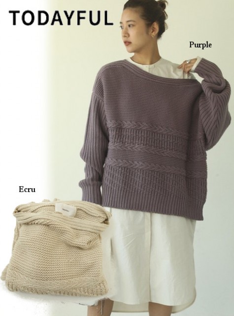 ゆるっとオーバーサイズに編立られたニットは肩を落としたラフな着方がおすすめ