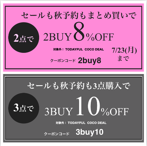 7/23まで!!まとめ買い選べる2クーポン★気になる秋冬先行予約アイテムもお得にゲット♪