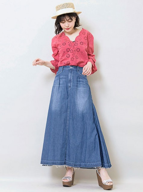 ウエスト位置をぐっと上げてベルトでウエストマークする事で、ボディラインをスッキリと見せてくれメリハリが出ます。