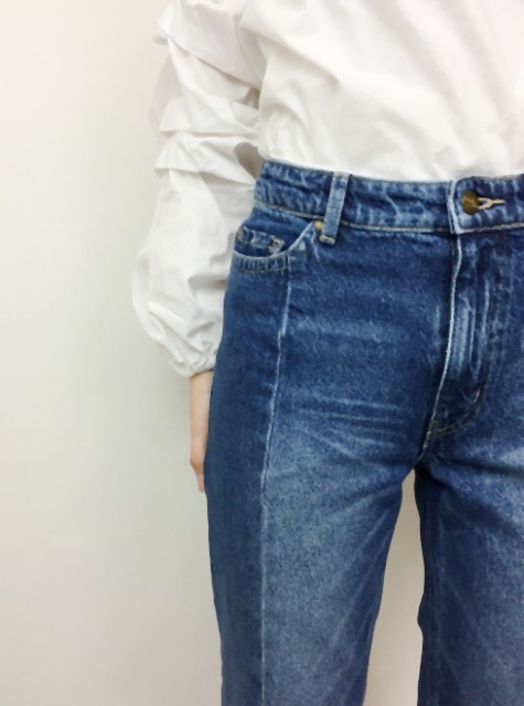 リメイク風のデニムパンツはシンプルスタイルにもアクセントを与えてくれる優秀アイテム!!