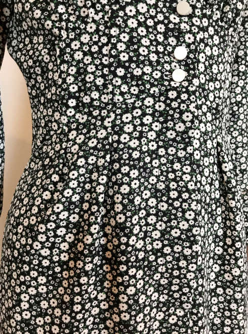 スカート部分はタイトシルエットに作ることでメリハリを出し、クラシカルな雰囲気にまとめました。