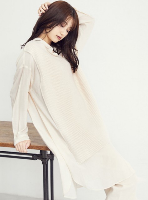 ニットベストをレイヤードしたかのようなニットドッキングロングシャツ