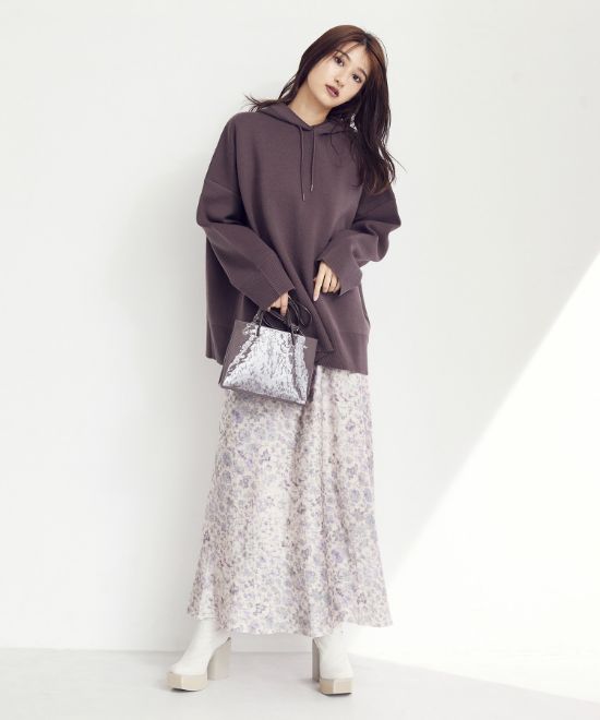 パーカーなどカジュアルなアイテムと合わせても女性らしい印象を演出してくれます。