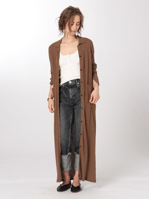 シャツのディテールをリブ編みで表現したロングカーディガン