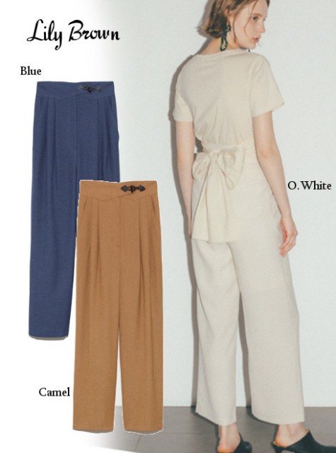 ウエストにトグルをあしらって、アクセントを添えたストレートパンツ。