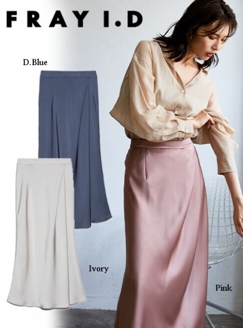 クレープサテンの上品な光沢とカラーが美しいナロースカート