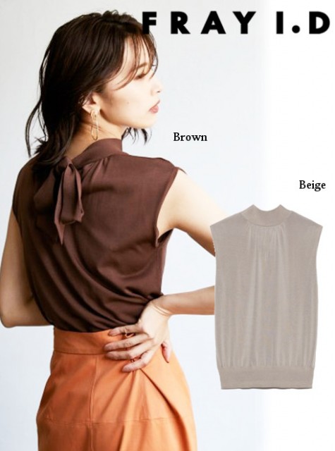 ハイネックとリボンタイの前後2Wayで着られるデザインニット
