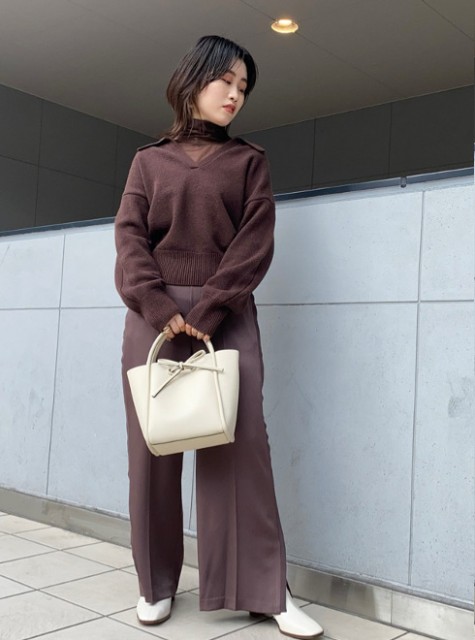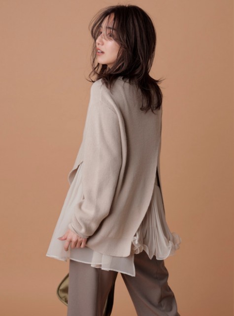 今季らしいニュアンスカラーのレイヤードスタイルを異素材で表現しました。