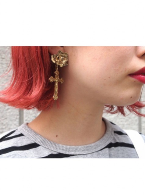 エッジのきいたガーリーなローズからクロスのモチーフが揺れてセンシティブな雰囲気に。