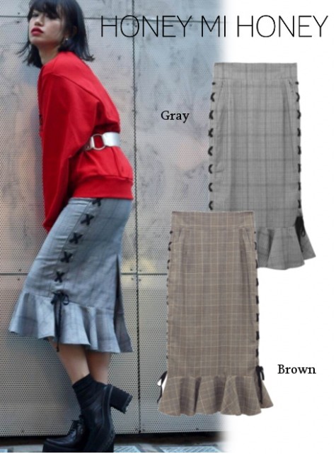 レースアップに一目惚れ♪タイトなスカートにあしらわれたフリルがムード満点の一枚