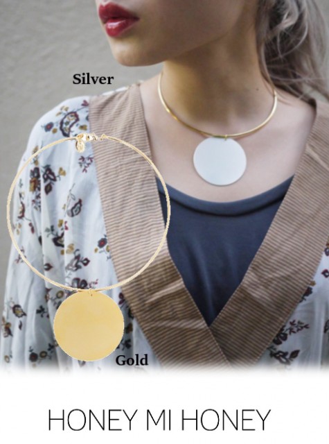 大ぶりなサークルプレートは胸元に視線を誘います。