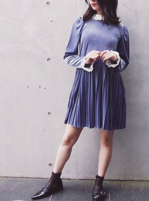 ベルベット素材がレトロで季節感あふれる印象に仕上げてくれるワンピース★