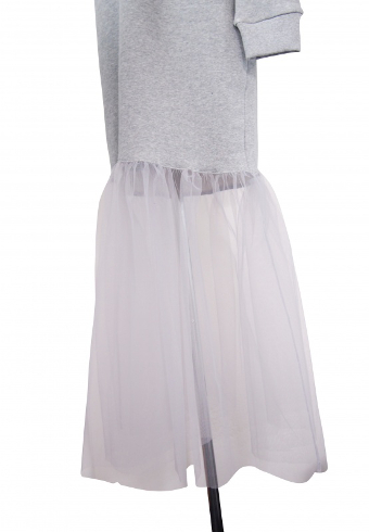 柔らかなスウェットワンピの裾をギャザーを寄せたふんわりとした