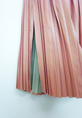 細かいプリーツと深く入ったスリットがクールな印象に!