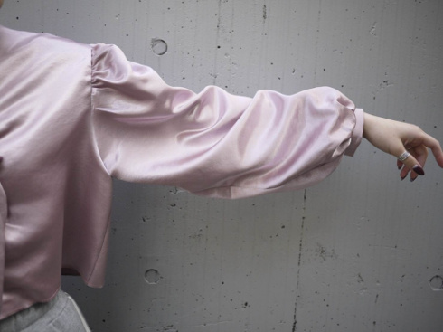 ややドロップショルダーになったボリュームスリーブで、ふんわりとしたボリューミーなシルエットも特徴的。