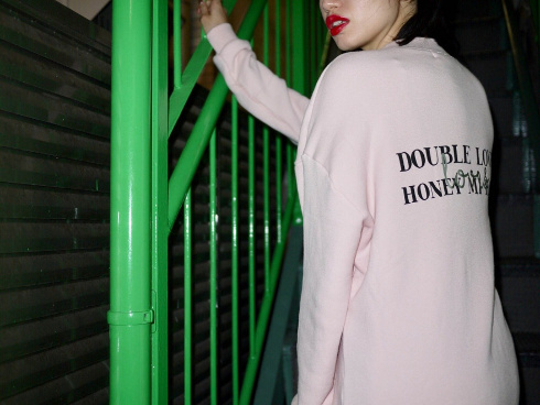 バックにはDouble LoversとHONEY MI HONEYのブランドロゴをプリント。