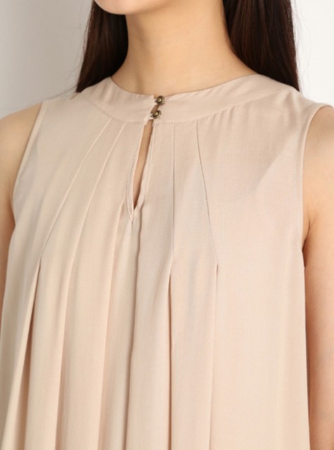 ネックラインにたっぷりのタックを寄せた、ボリューム満点のワンピース。