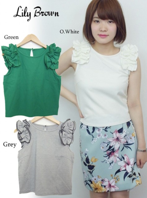 2枚仕立てのボリュームフリルで、甘い表情を添えたトップス。