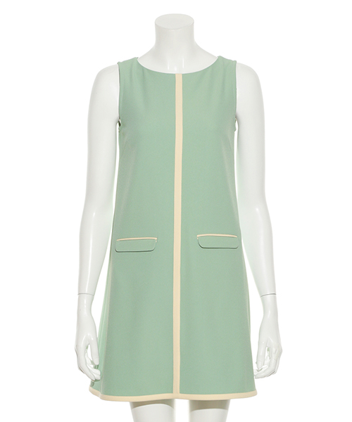 パイピングの配色にこだわり、レトロワンピースにモダンな雰囲気を添えています。