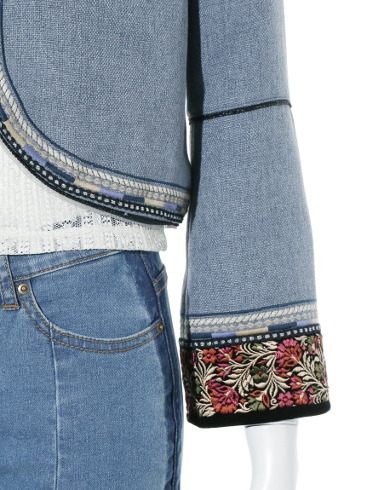 違ったデザインの刺繍をあしらったノーカラージャケット。
