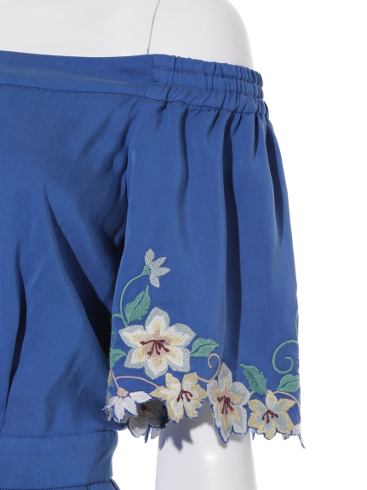 スリーブ部分の刺繍がアクセントになったオフショルサロペ