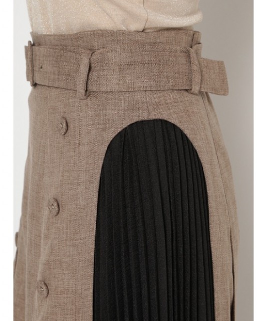 サイドには上品な光沢感のあるシフォンプリーツを取り入れたロングスカート
