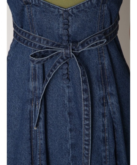 スクエアカットがフェイスまわりを美しく見せてくれるデニムワンピース