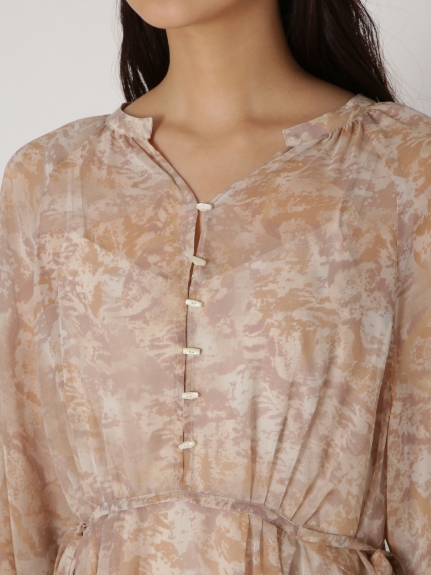 タイダイプリントを落着きのあるカラートーンにして、シックに仕上げているのがポイントです