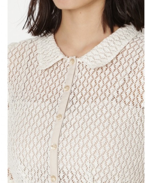 「透け感のあるレースが大人のムードを演出するノースリーブブラウス。