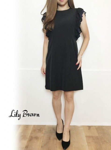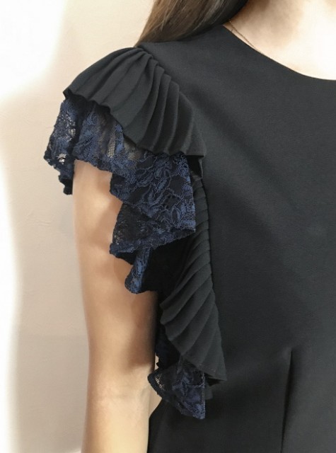 シンプルなミニ丈はフリルと花柄レーススリーブで技ありな大人ワンピに♦