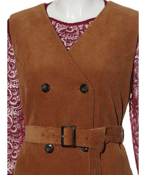 秋らしいスタイリングを楽しめるコーデュロイ生地のレトロなワンピース♣