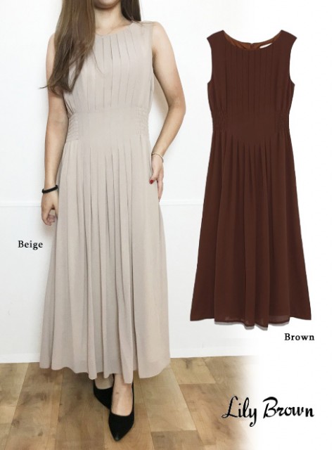 幅広のプリーツでレディーなラインを描くシフォンワンピ♠オケージョンにも◎