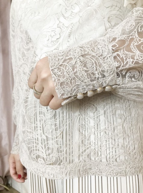 他にはないチュールレース、長めの袖にはクラシックな釦が並び