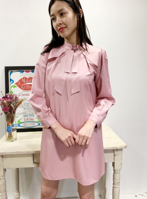 淡いピンクで上品な雰囲気のミニ丈ドレス