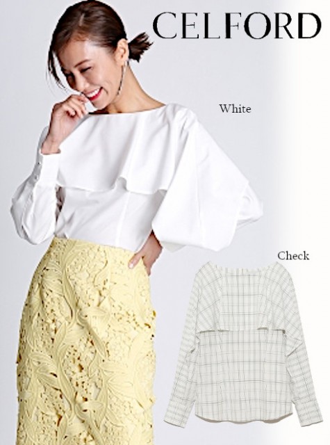 袖のドレープがドラマティックなケープ風デザインのブラウス。