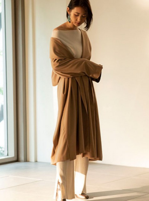 ナチュラルな落ち感で魅せるガウン風大人トレンチ♪