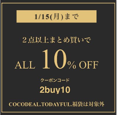 明日まで!!新作アイテムも2BUY10%OFF!!