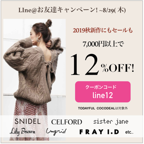 SNIDEL,CELFORDなど秋アイテムがお得【なんと今回は12%OFF】秋準備はこの機会に♪