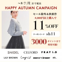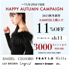 【 HAPPY AUTUMN CAMPAIGN START 】人気ブランドの秋新作&予約が8000円以上購入で★11%OFF&さらに3000ポイントまで利用可能★