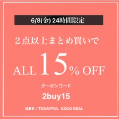 本日だけの限定キャンペーン!!新作&予約アイテムも2点以上でALL15%OFFに☆