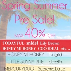 夏のファイナルセール開催中!! snidel,HONEY MI HONEY,TODAYFUL,LilyBrownなど…人気ブランドもお求め安く☆ 夏に使えるアイテムも最大70%OFFに♪この機会を是非お見逃しなく!! > […]
