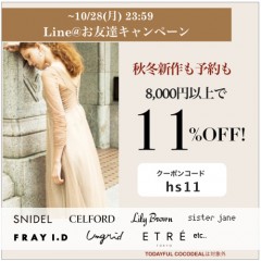 SNIDEL.CELFORDなど秋冬新作も予約も【8000円以上で11%OFF!!】Line@お友達キャンペーンスタート♪